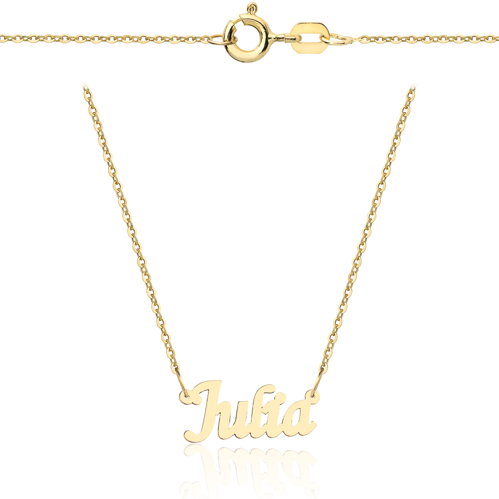 Najwyższej jakości złoty łańcuszek z imieniem.W całości wykonany ze złota w próbie 585.Biżuteria którą Państwu oferujemy została wykonana z największą starannością przez firmę PPUHPiryt.Zdjęcie przedstawia produkt, który Państwu oferujemy.
