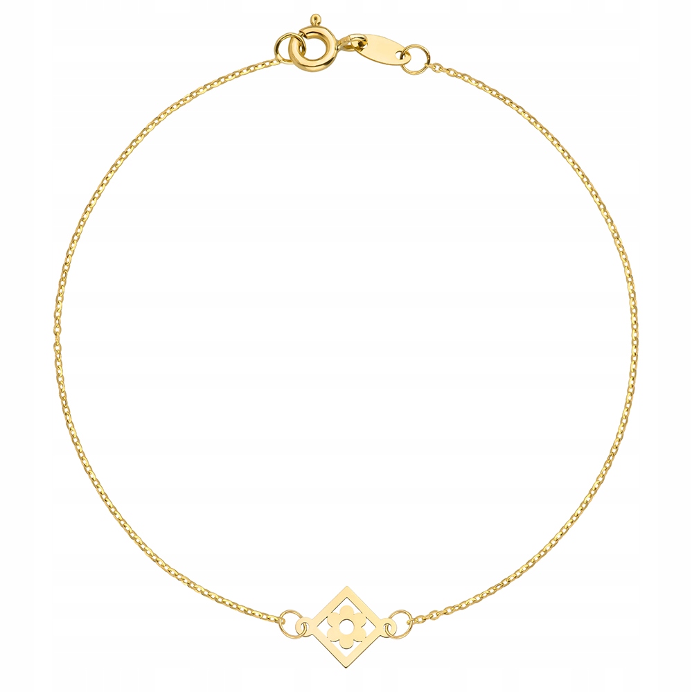 Złota bransoletka kwadrat z kwiatkiem 333