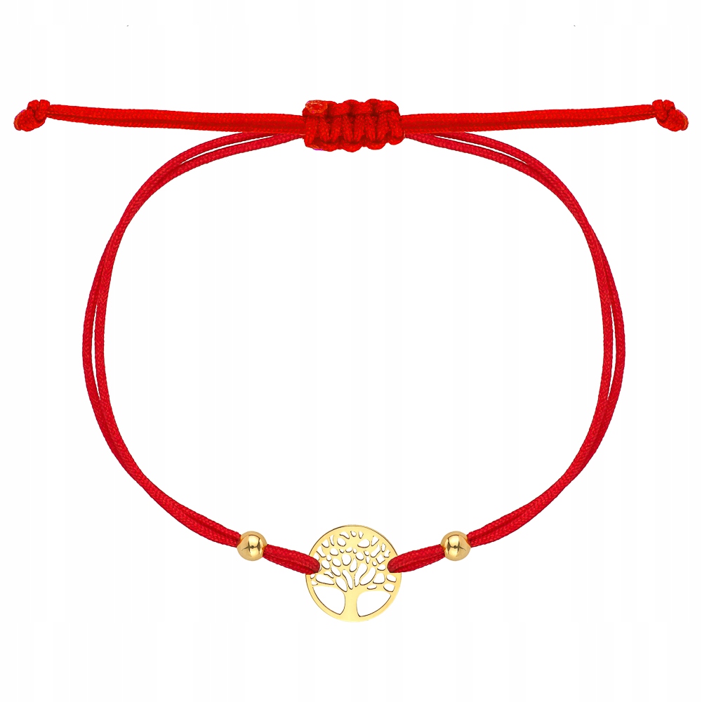 Najwyższej jakościzłota bransoletka na czerwonym sznurku.Biżuteria którą Państwu oferujemy została wykonana z największą starannością przez firmę PPUHPiryt. Zdjęcie przedstawia produkt, który Państwu oferujemy.