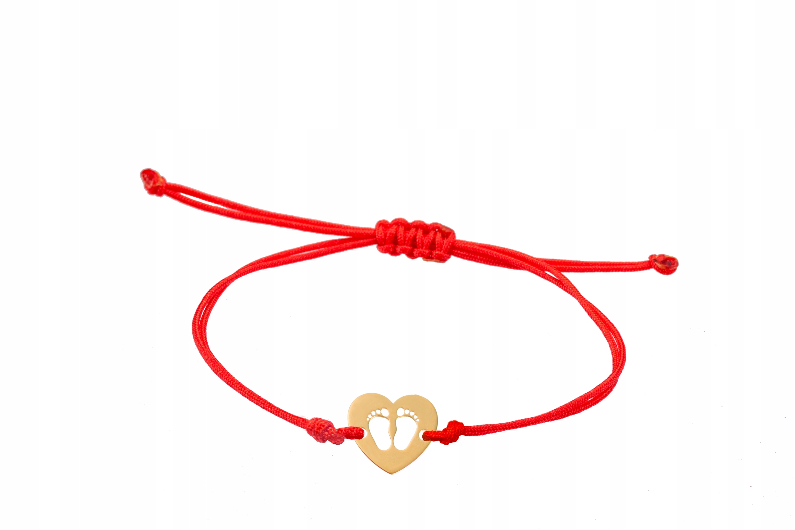 Złota bransoletka na sznurku stopy w sercu 585
